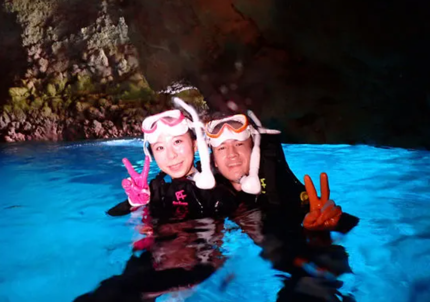 青の洞窟に高確率で入ることができ、1組ずつ専属インストラクターが付き、貸切で案内してくれます。