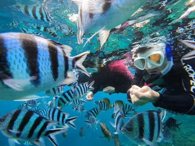 無料でタオル・サンダル・熱帯魚の餌やり・GoProの写真撮影がついています。