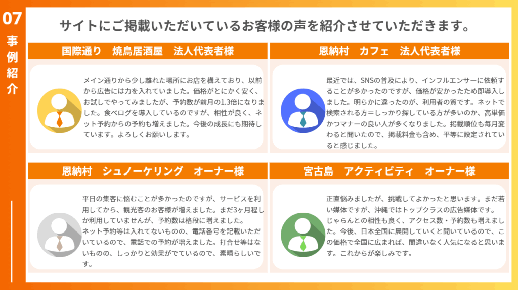 ありがたいことに、現在ご掲載ただいている店舗皆様、費用対効果プラスになっております。