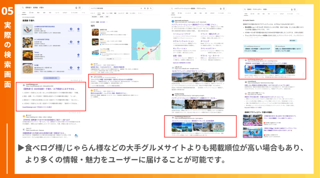 じゃらん・アソビュー等の大手アクティビティサイトよりも上位を獲得していることも多いです。